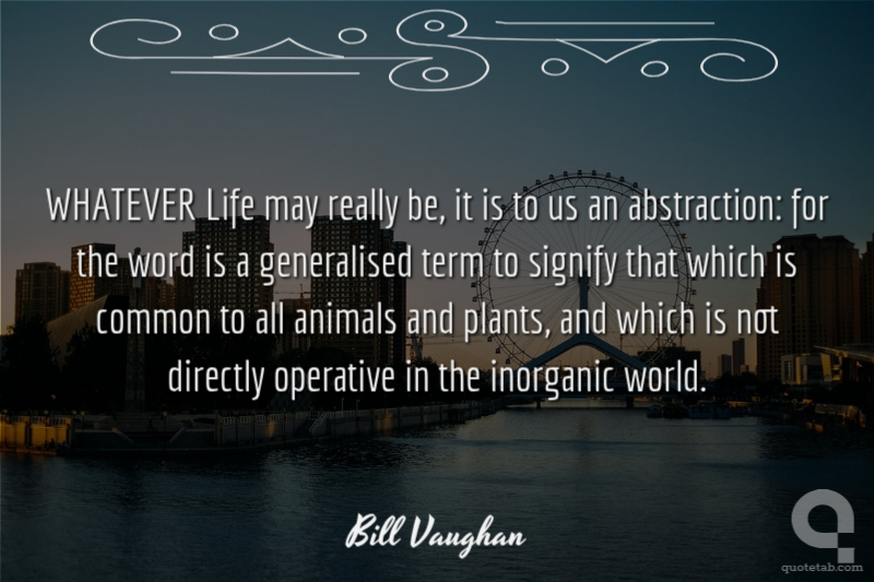 WHATEVER Life may really be, it is to us an abstraction: for the word is a generalised term to signify that which is common to all animals and plants, and which is not directly operative in the inorganic world.