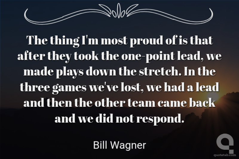 The thing I'm most proud of is that after they took the one-point lead, we made plays down the stretch. In the three games we've lost, we had a lead and then the other team came back and we did not respond.