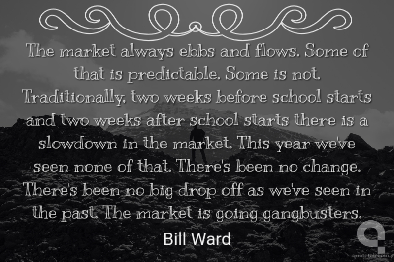 The market always ebbs and flows. Some of that is predictable. Some is not. Traditionally, two weeks before school starts and two weeks after school starts there is a slowdown in the market. This year we've seen none of that. There's been no change. There's been no big drop off as we've seen in the past. The market is going gangbusters.
