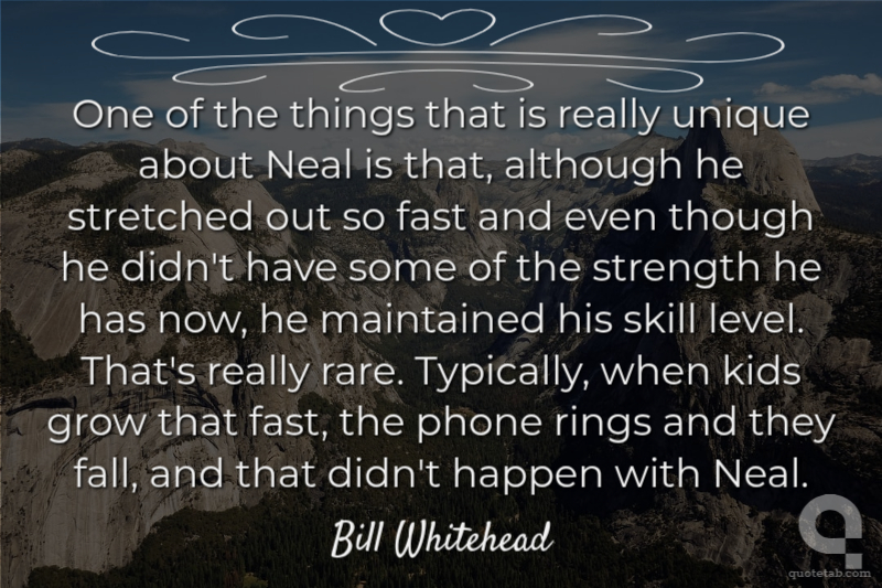 One of the things that is really unique about Neal is that, although he stretched out so fast and even though he didn't have some of the strength he has now, he maintained his skill level. That's really rare. Typically, when kids grow that fast, the phone rings and they fall, and that didn't happen with Neal.