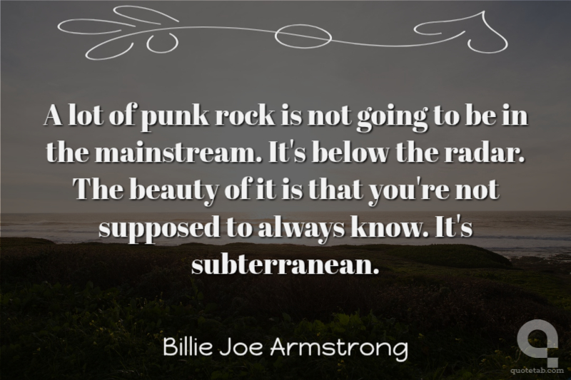 A lot of punk rock is not going to be in the mainstream. It's below the radar. The beauty of it is that you're not supposed to always know. It's subterranean.