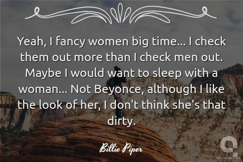 Yeah, I fancy women big time... I check them out more than I check men out. Maybe I would want to sleep with a woman... Not Beyonce, although I like the look of her, I don't think she's that dirty.