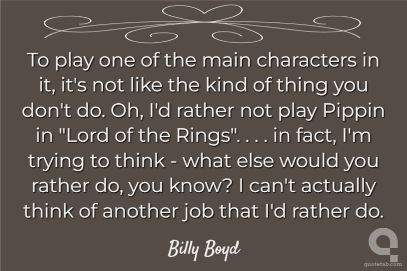 To play one of the main characters in it, it's not like the kind of thing you don't do. Oh, I'd rather not play Pippin in "Lord of the Rings". . . . in fact, I'm trying to think - what else would you rather do, you know? I can't actually think of another job that I'd rather do.