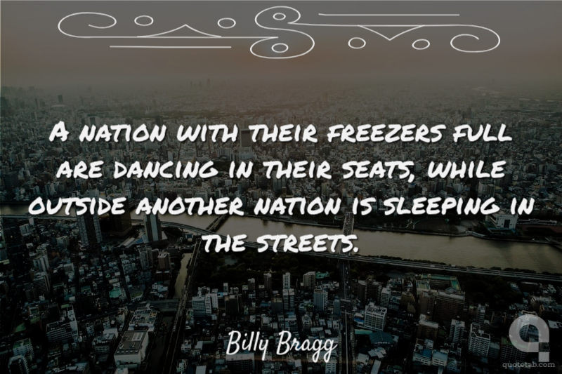 A nation with their freezers full are dancing in their seats, while outside another nation is sleeping in the streets.