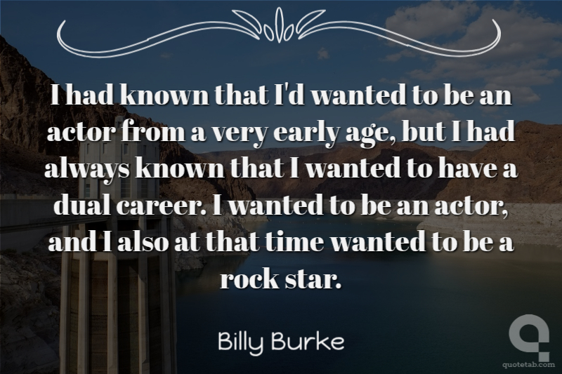 I had known that I'd wanted to be an actor from a very early age, but I had always known that I wanted to have a dual career. I wanted to be an actor, and I also at that time wanted to be a rock star.