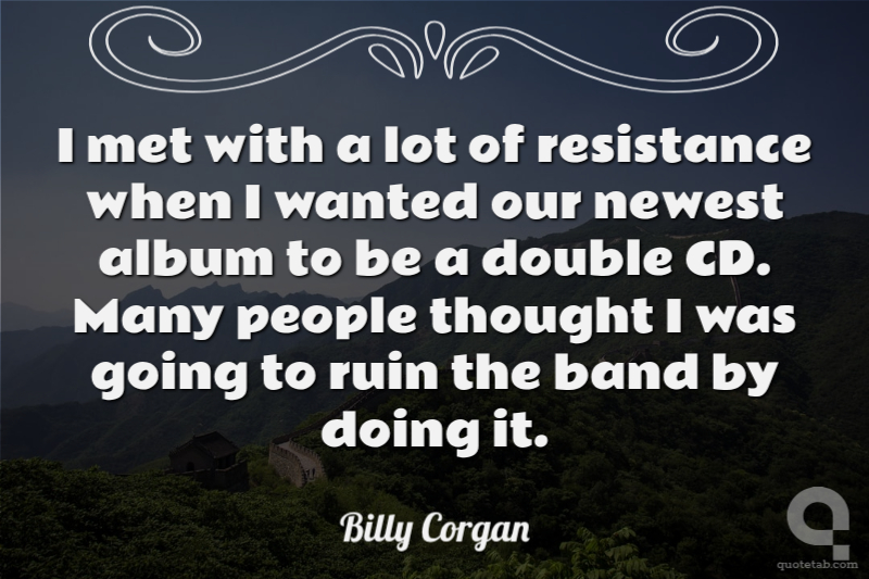 I met with a lot of resistance when I wanted our newest album to be a double CD. Many people thought I was going to ruin the band by doing it.