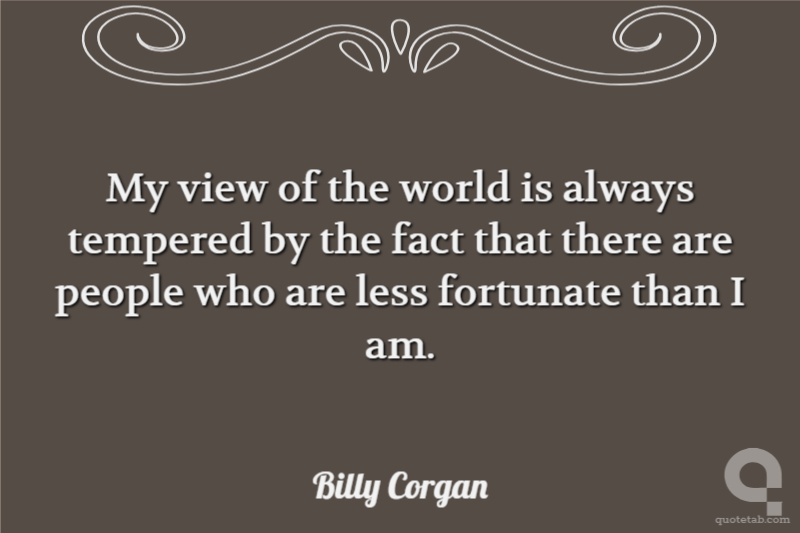My view of the world is always tempered by the fact that there are people who are less fortunate than I am.
