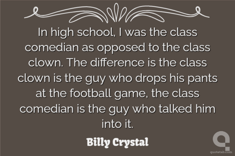 In high school, I was the class comedian as opposed to the class clown. The difference is the class clown is the guy who drops his pants at the football game, the class comedian is the guy who talked him into it.