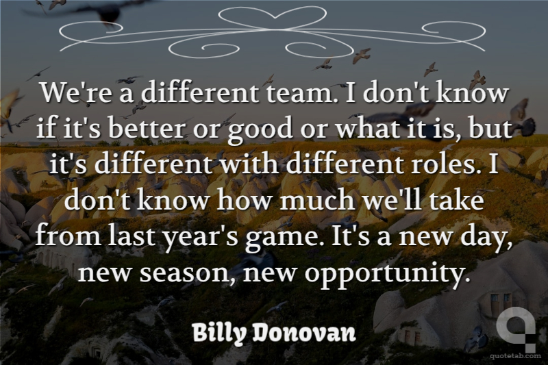 We're a different team. I don't know if it's better or good or what it is, but it's different with different roles. I don't know how much we'll take from last year's game. It's a new day, new season, new opportunity.