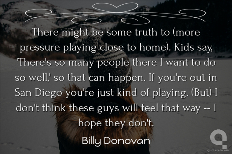 There might be some truth to (more pressure playing close to home). Kids say, 'There's so many people there I want to do so well,' so that can happen. If you're out in San Diego you're just kind of playing. (But) I don't think these guys will feel that way -- I hope they don't.