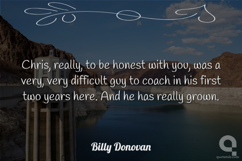 Chris, really, to be honest with you, was a very, very difficult guy to coach in his first two years here. And he has really grown.