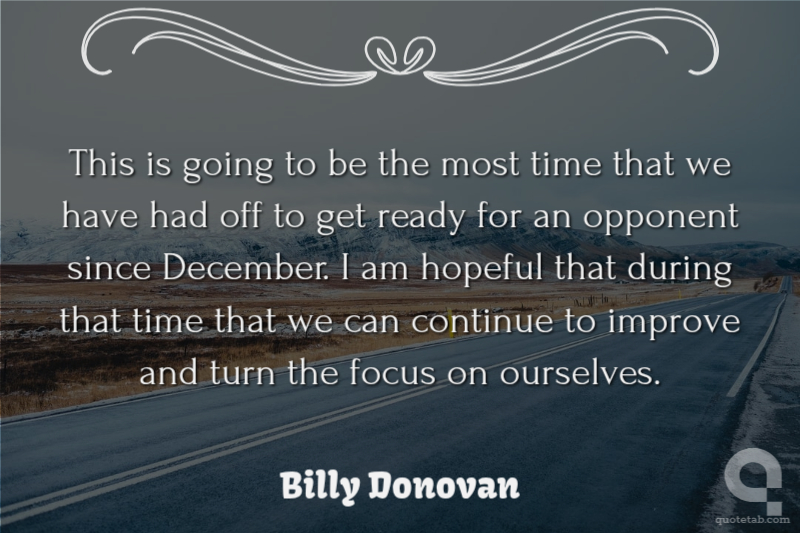 This is going to be the most time that we have had off to get ready for an opponent since December. I am hopeful that during that time that we can continue to improve and turn the focus on ourselves.