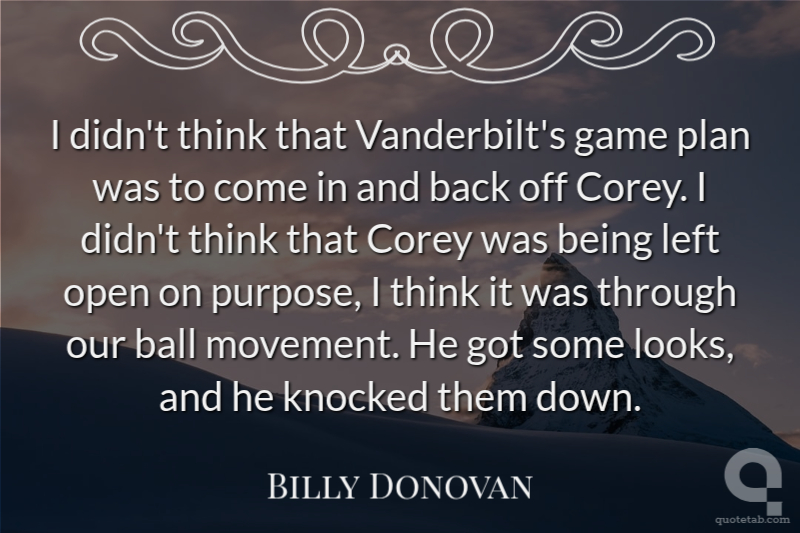 I didn't think that Vanderbilt's game plan was to come in and back off Corey. I didn't think that Corey was being left open on purpose, I think it was through our ball movement. He got some looks, and he knocked them down.