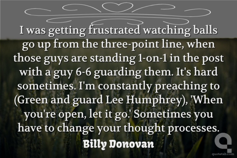 I was getting frustrated watching balls go up from the three-point line, when those guys are standing 1-on-1 in the post with a guy 6-6 guarding them. It's hard sometimes. I'm constantly preaching to (Green and guard Lee Humphrey), 'When you're open, let it go.' Sometimes you have to change your thought processes.