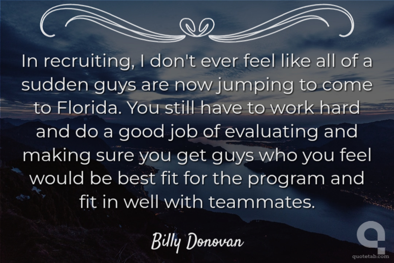 In recruiting, I don't ever feel like all of a sudden guys are now jumping to come to Florida. You still have to work hard and do a good job of evaluating and making sure you get guys who you feel would be best fit for the program and fit in well with teammates.
