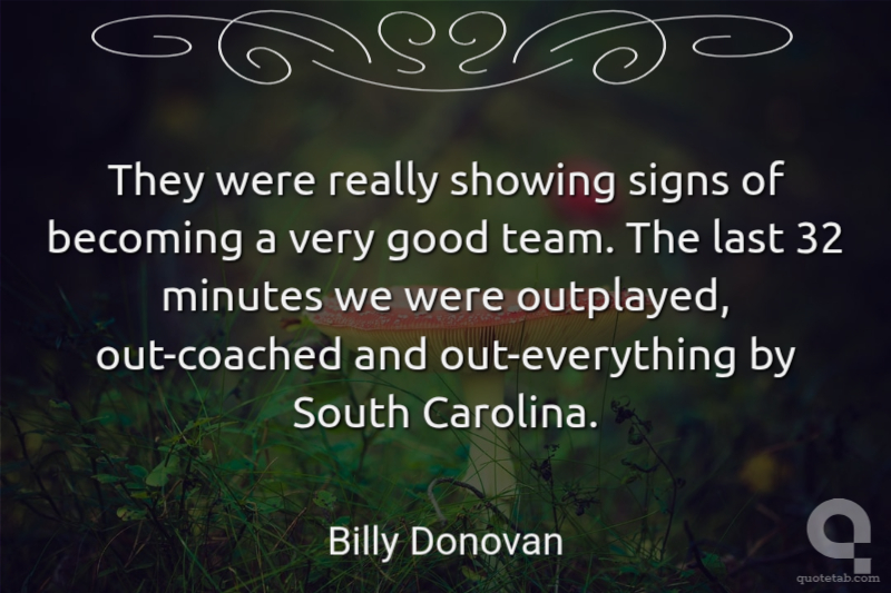 They were really showing signs of becoming a very good team. The last 32 minutes we were outplayed, out-coached and out-everything by South Carolina.