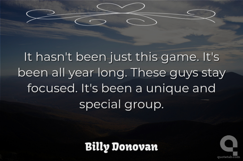 It hasn't been just this game. It's been all year long. These guys stay focused. It's been a unique and special group.