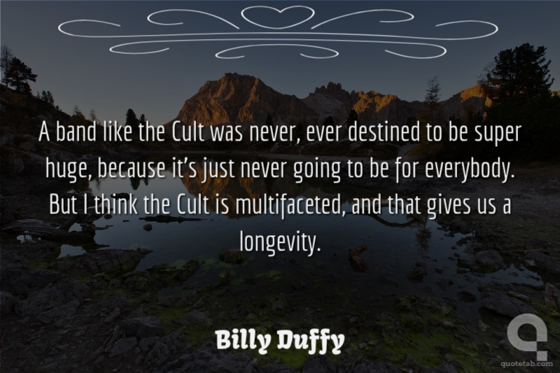 A band like the Cult was never, ever destined to be super huge, because it's just never going to be for everybody. But I think the Cult is multifaceted, and that gives us a longevity.