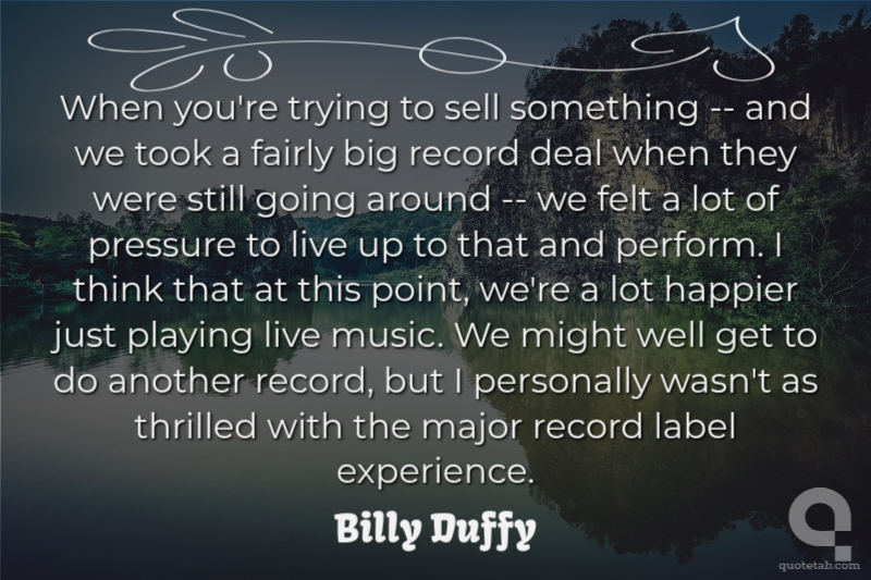 When you're trying to sell something -- and we took a fairly big record deal when they were still going around -- we felt a lot of pressure to live up to that and perform. I think that at this point, we're a lot happier just playing live music. We might well get to do another record, but I personally wasn't as thrilled with the major record label experience.