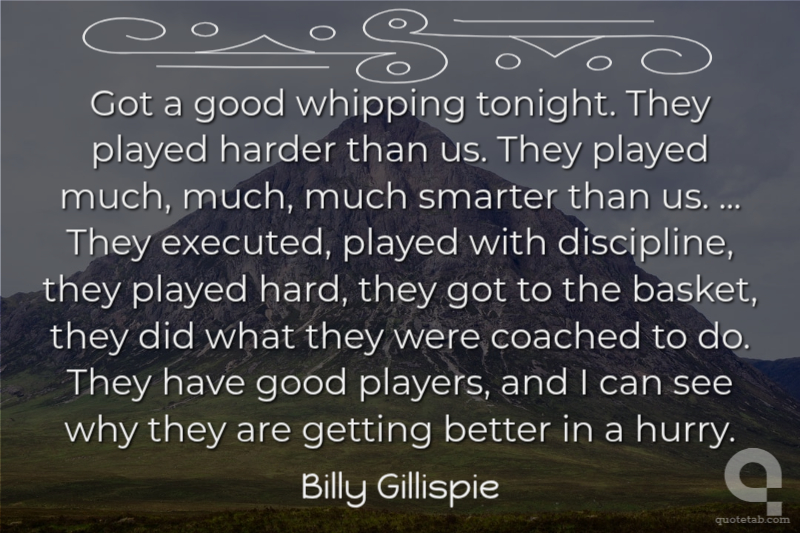 Got a good whipping tonight. They played harder than us. They played much, much, much smarter than us. ... They executed, played with discipline, they played hard, they got to the basket, they did what they were coached to do. They have good players, and I can see why they are getting better in a hurry.