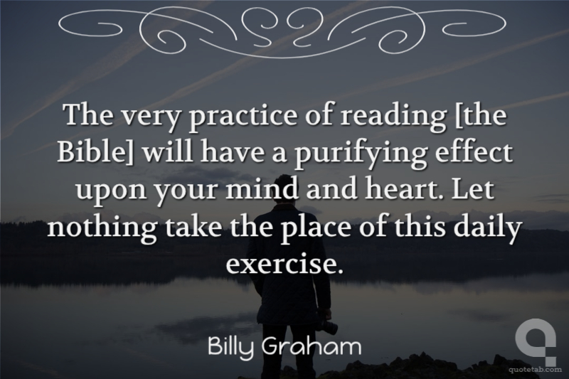 The very practice of reading [the Bible] will have a purifying effect upon your mind and heart. Let nothing take the place of this daily exercise.