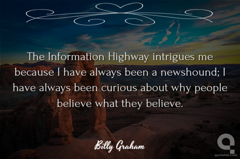 The Information Highway intrigues me because I have always been a newshound; I have always been curious about why people believe what they believe.