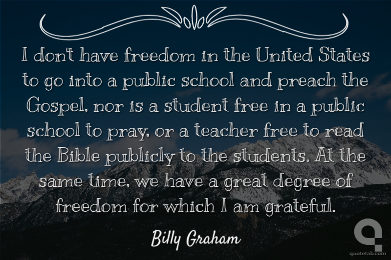 I don't have freedom in the United States to go into a public school and preach the Gospel, nor is a student free in a public school to pray, or a teacher free to read the Bible publicly to the students. At the same time, we have a great degree of freedom for which I am grateful.