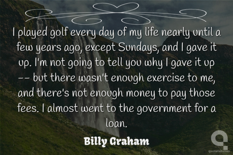 I played golf every day of my life nearly until a few years ago, except Sundays, and I gave it up. I'm not going to tell you why I gave it up -- but there wasn't enough exercise to me, and there's not enough money to pay those fees. I almost went to the government for a loan.