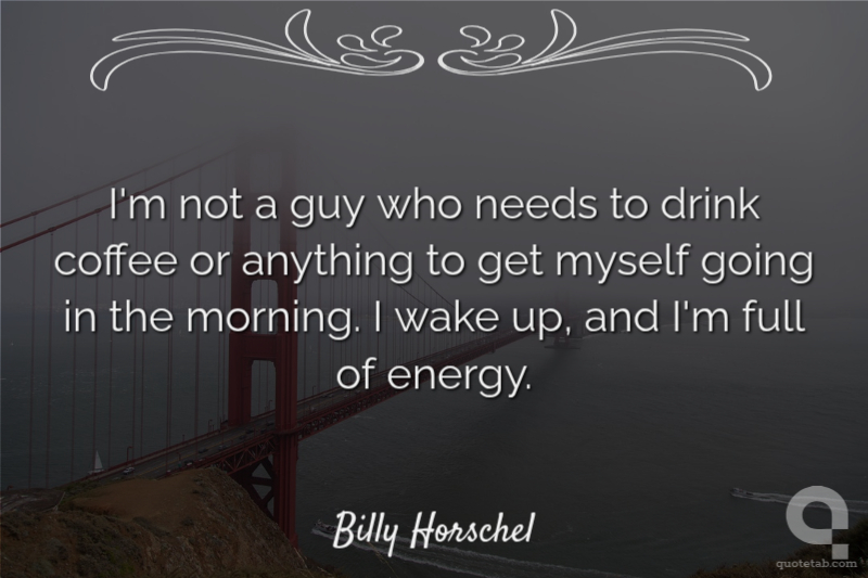I'm not a guy who needs to drink coffee or anything to get myself going in the morning. I wake up, and I'm full of energy.