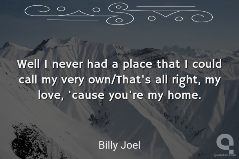 Well I never had a place that I could call my very own/That's all right, my love, 'cause you're my home.