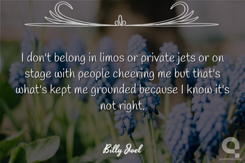 I don't belong in limos or private jets or on stage with people cheering me but that's what's kept me grounded because I know it's not right.