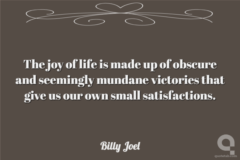 The joy of life is made up of obscure and seemingly mundane victories that give us our own small satisfactions.