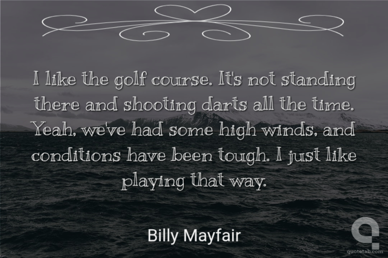 I like the golf course. It's not standing there and shooting darts all the time. Yeah, we've had some high winds, and conditions have been tough. I just like playing that way.