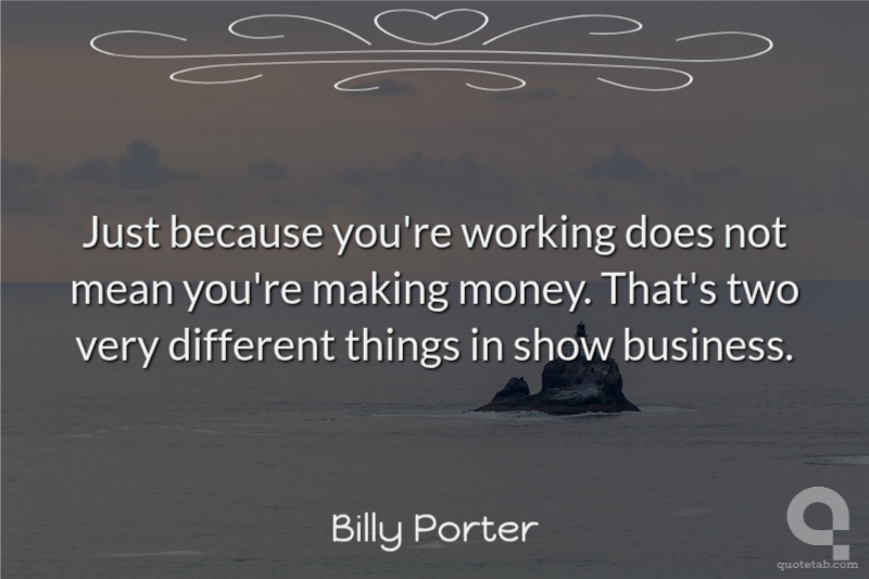 Just because you're working does not mean you're making money. That's two very different things in show business.