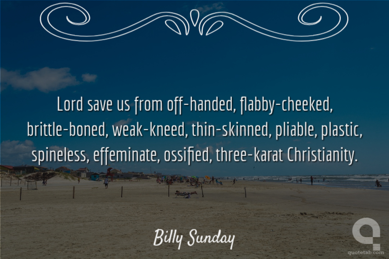 Lord save us from off-handed, flabby-cheeked, brittle-boned, weak-kneed, thin-skinned, pliable, plastic, spineless, effeminate, ossified, three-karat Christianity.