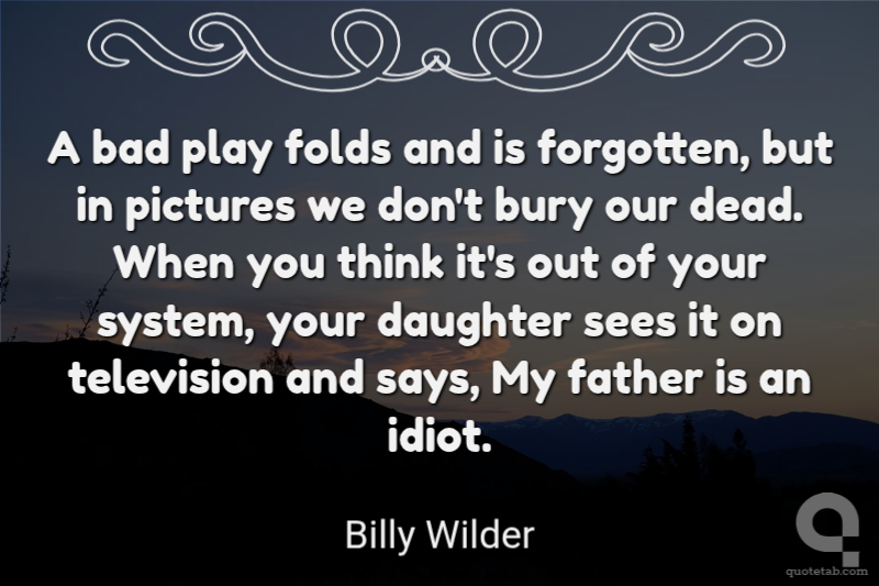 A bad play folds and is forgotten, but in pictures we don't bury our dead. When you think it's out of your system, your daughter sees it on television and says, My father is an idiot.