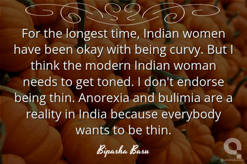 For the longest time, Indian women have been okay with being curvy. But I think the modern Indian woman needs to get toned. I don't endorse being thin. Anorexia and bulimia are a reality in India because everybody wants to be thin.