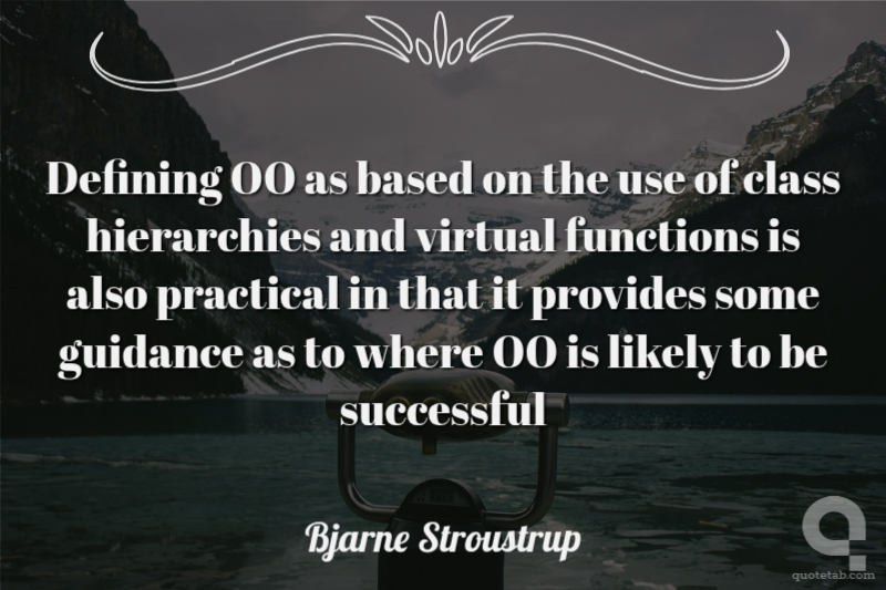 Defining OO as based on the use of class hierarchies and virtual functions is also practical in that it provides some guidance as to where OO is likely to be successful