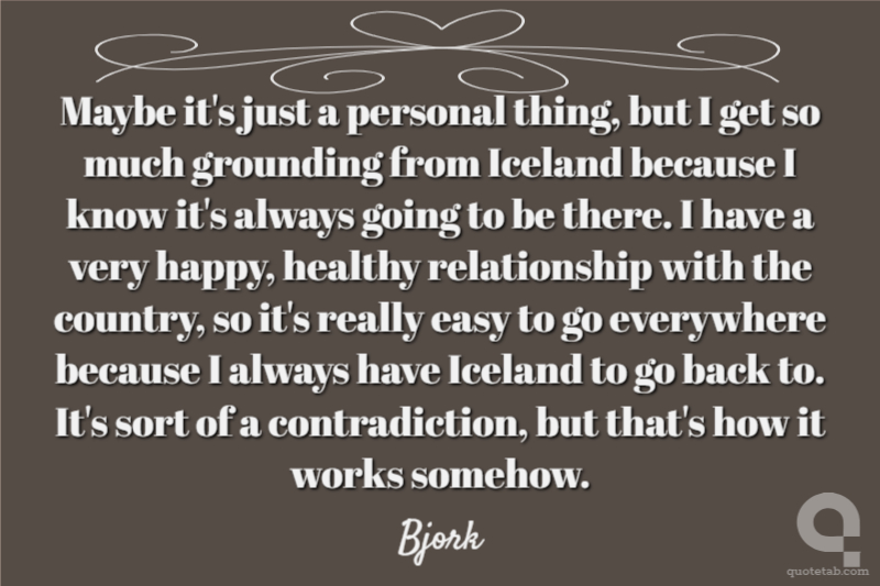 Maybe it's just a personal thing, but I get so much grounding from Iceland because I know it's always going to be there. I have a very happy, healthy relationship with the country, so it's really easy to go everywhere because I always have Iceland to go back to. It's sort of a contradiction, but that's how it works somehow.