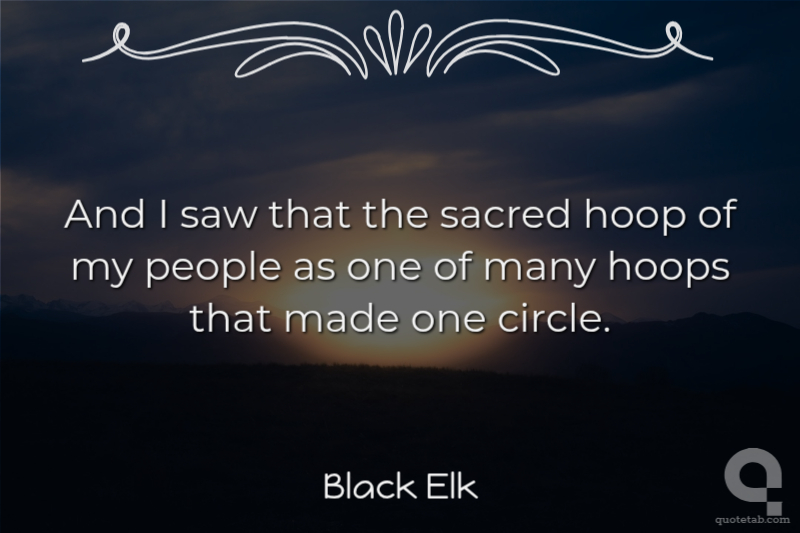 And I saw that the sacred hoop of my people as one of many hoops that made one circle.