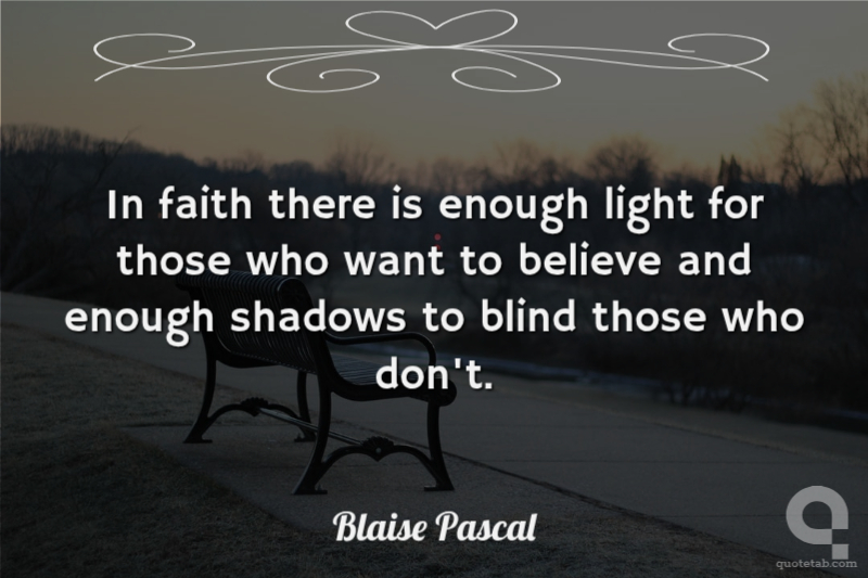 In faith there is enough light for those who want to believe and enough shadows to blind those who don't.