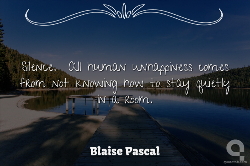 Silence. All human unhappiness comes from not knowing how to stay quietly in a room.