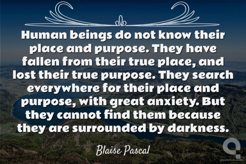 Human beings do not know their place and purpose. They have fallen from their true place, and lost their true purpose. They search everywhere for their place and purpose, with great anxiety. But they cannot find them because they are surrounded by darkness.