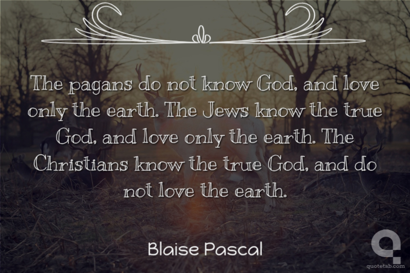 The pagans do not know God, and love only the earth. The Jews know the true God, and love only the earth. The Christians know the true God, and do not love the earth.