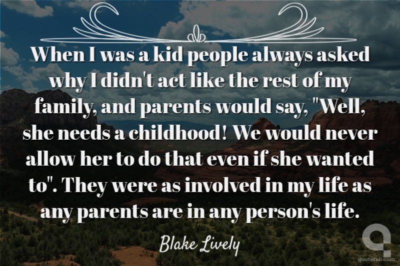 When I was a kid people always asked why I didn't act like the rest of my family, and parents would say, "Well, she needs a childhood! We would never allow her to do that even if she wanted to". They were as involved in my life as any parents are in any person's life.