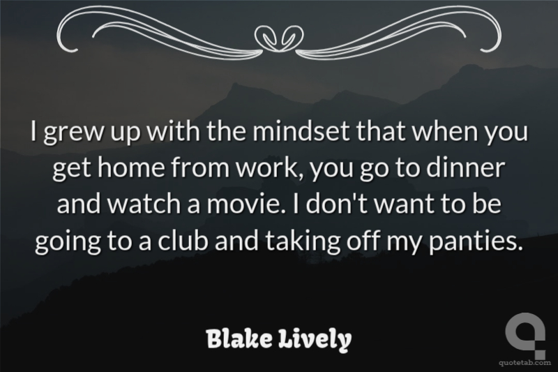 I grew up with the mindset that when you get home from work, you go to dinner and watch a movie. I don't want to be going to a club and taking off my panties.