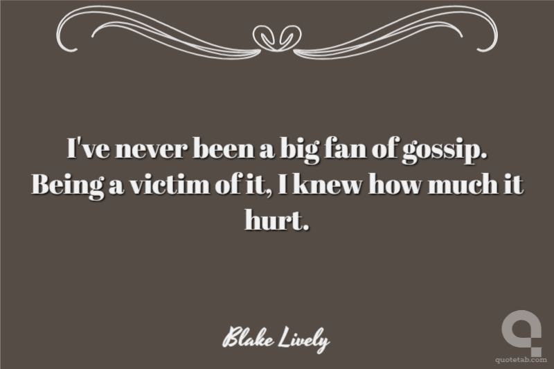 I've never been a big fan of gossip. Being a victim of it, I knew how much it hurt.