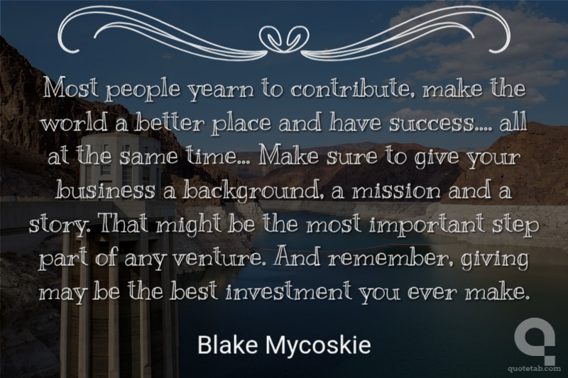 Most people yearn to contribute, make the world a better place and have success.... all at the same time... Make sure to give your business a background, a mission and a story. That might be the most important step part of any venture. And remember, giving may be the best investment you ever make.