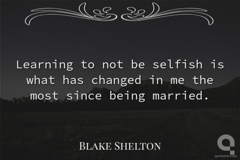 Learning to not be selfish is what has changed in me the most since being married.