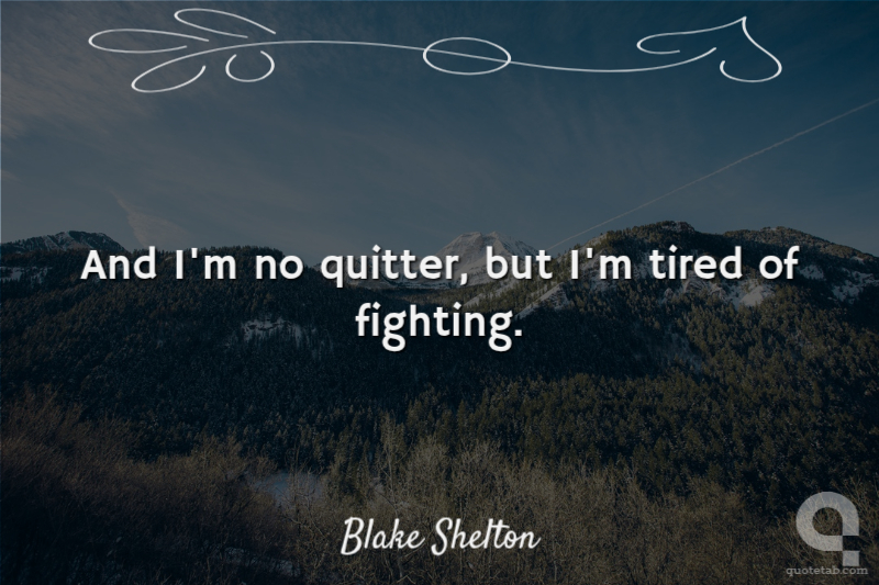 And I'm no quitter, but I'm tired of fighting.